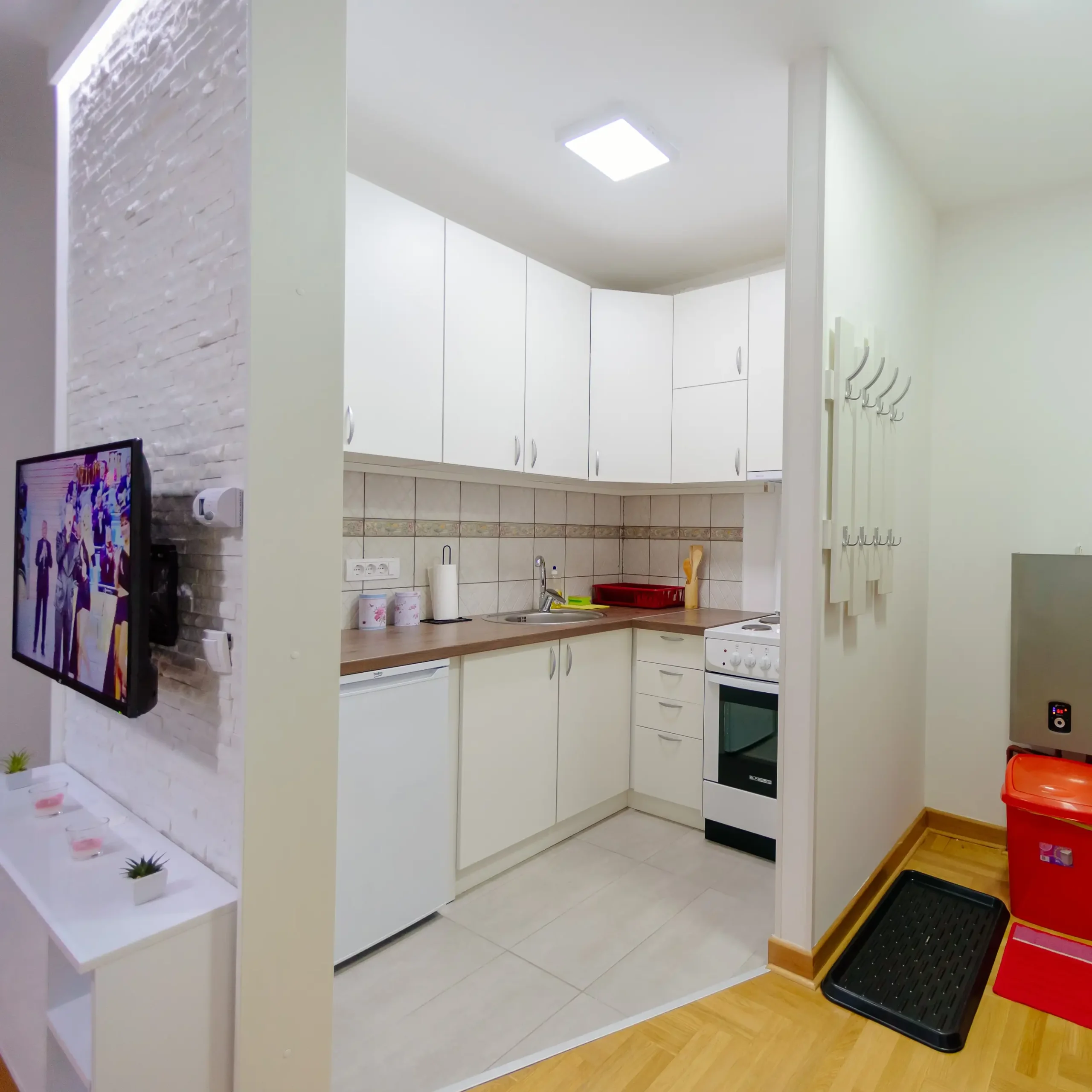 Apartman sadrži dnevni boravak gde se nalazi flat-screen televizor sa kablovskim kanalima, potpuno opremljenu kuhinju sa frižiderom i rernom, kao i jedno kupatilo sa tušem. Broj spavaćih soba je 1.