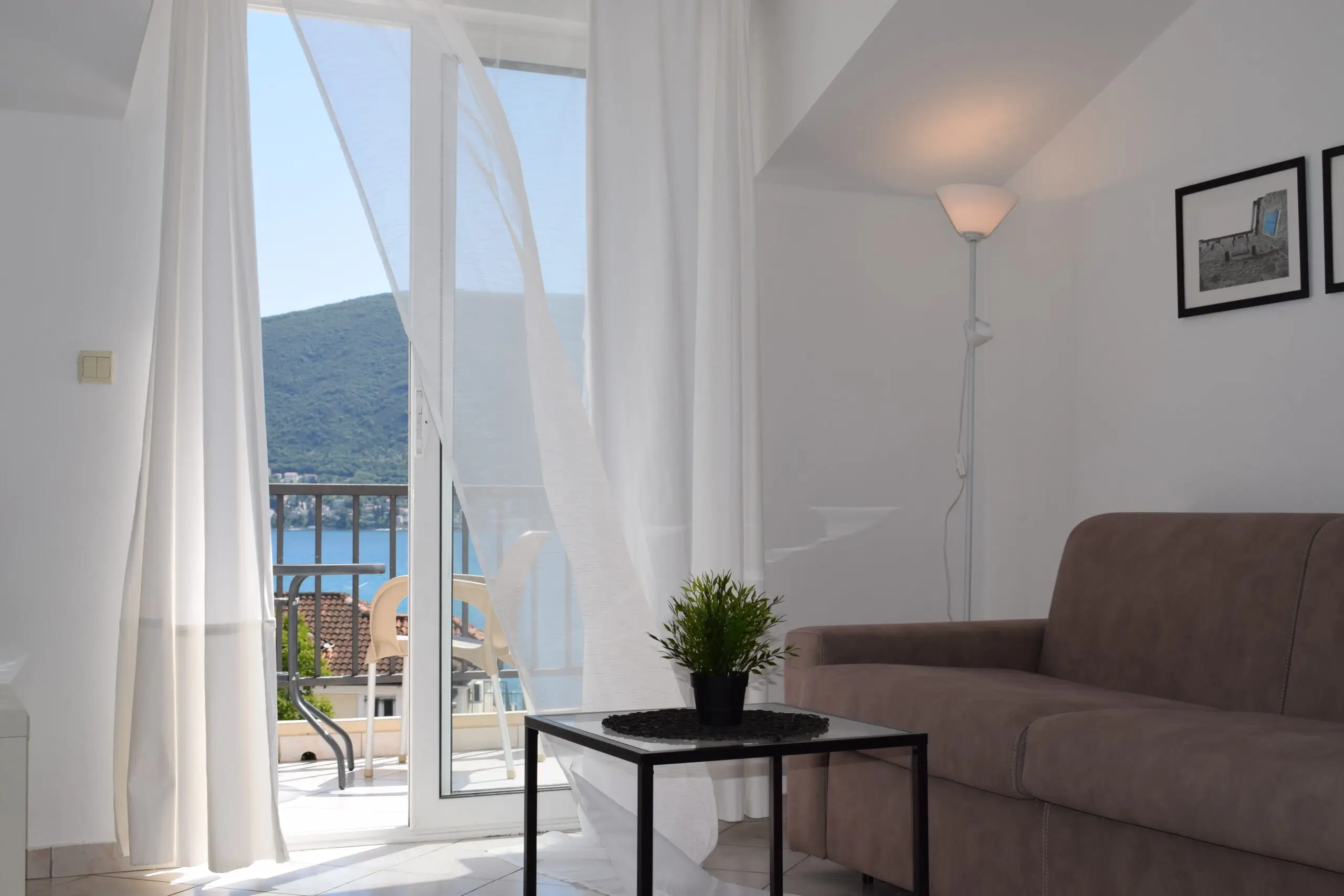 Većina apartmana ima pogled na ulaz u Bokokotorski zaliv ili more.
