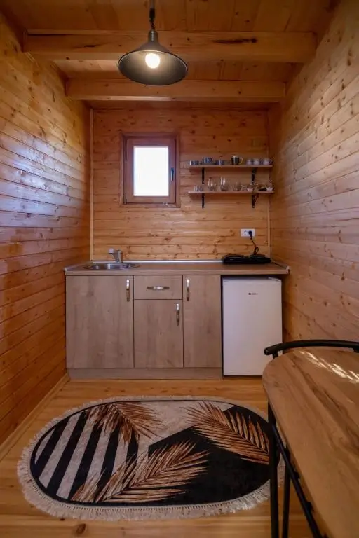 Brvnara 2 poseduje dnevni boravak, kuhinju sa trpezarijom, kao i terasu i kupatilo.