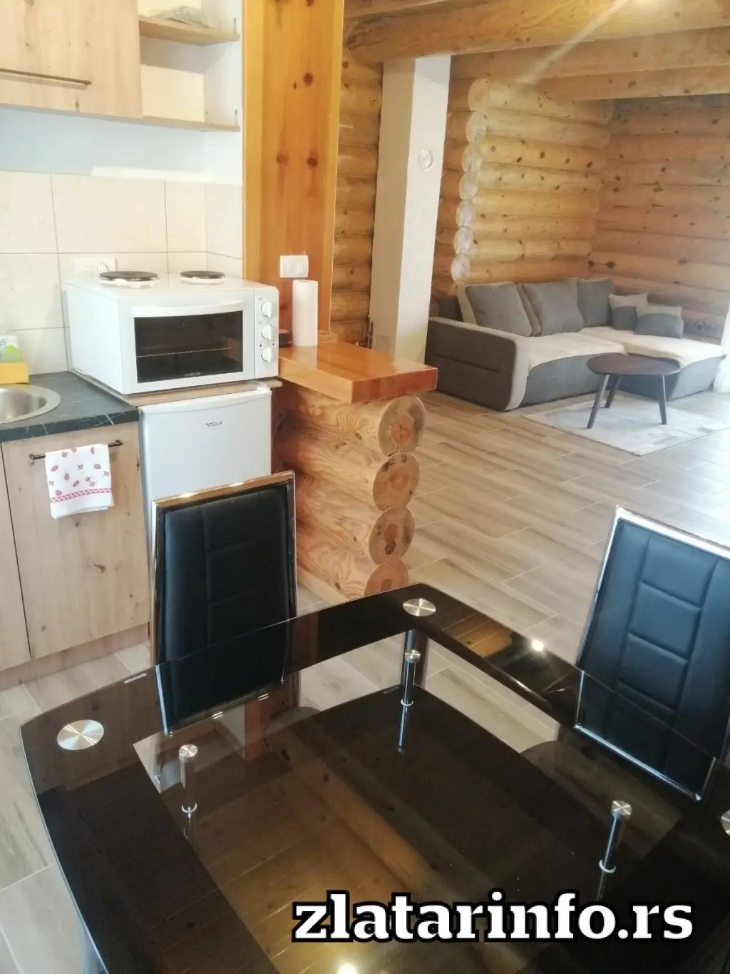 A boravak u samoj brvnari je izuzetno prijatan jer je brvnara od čistog drveta.