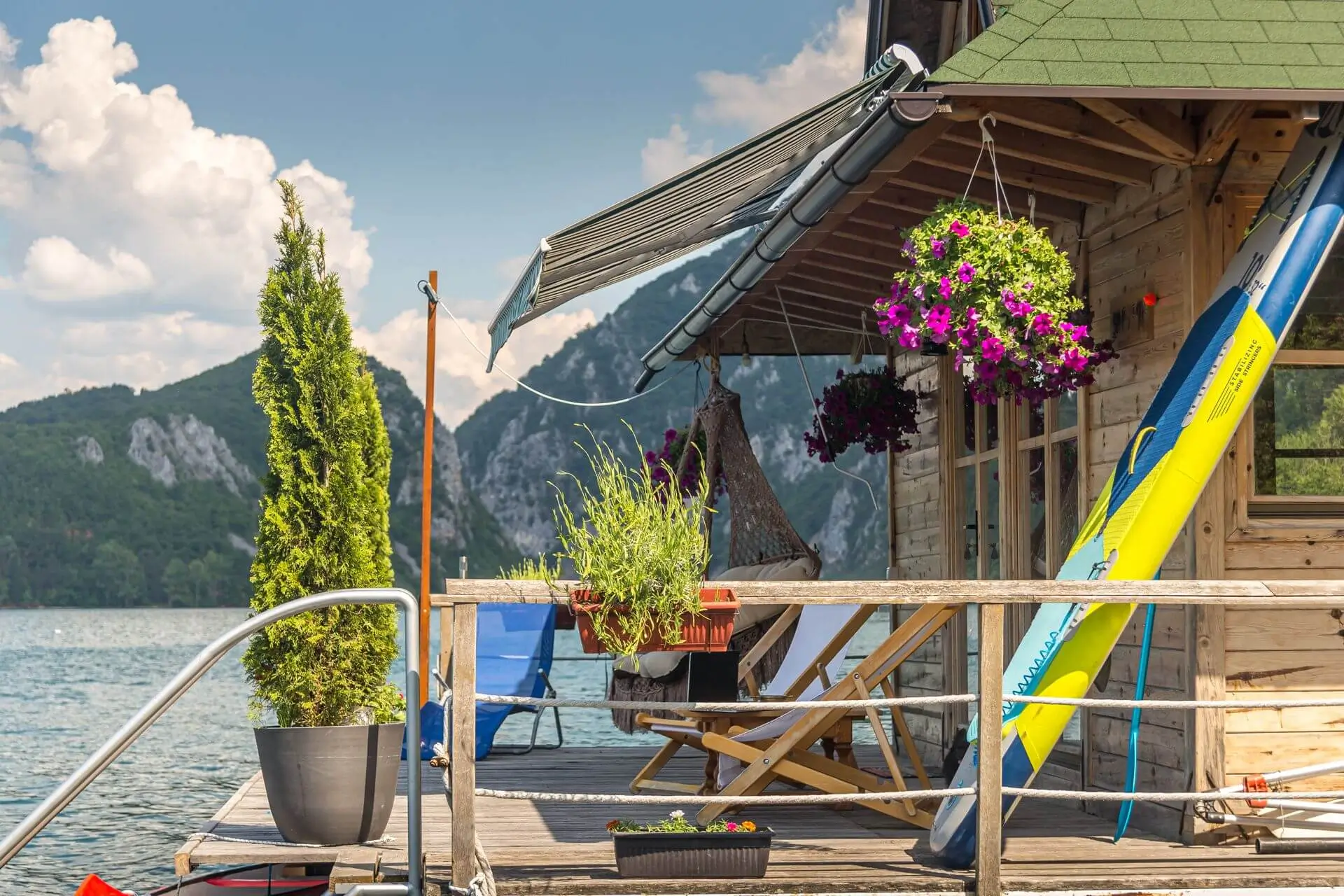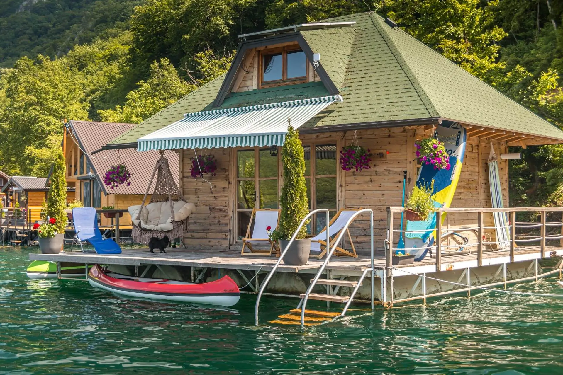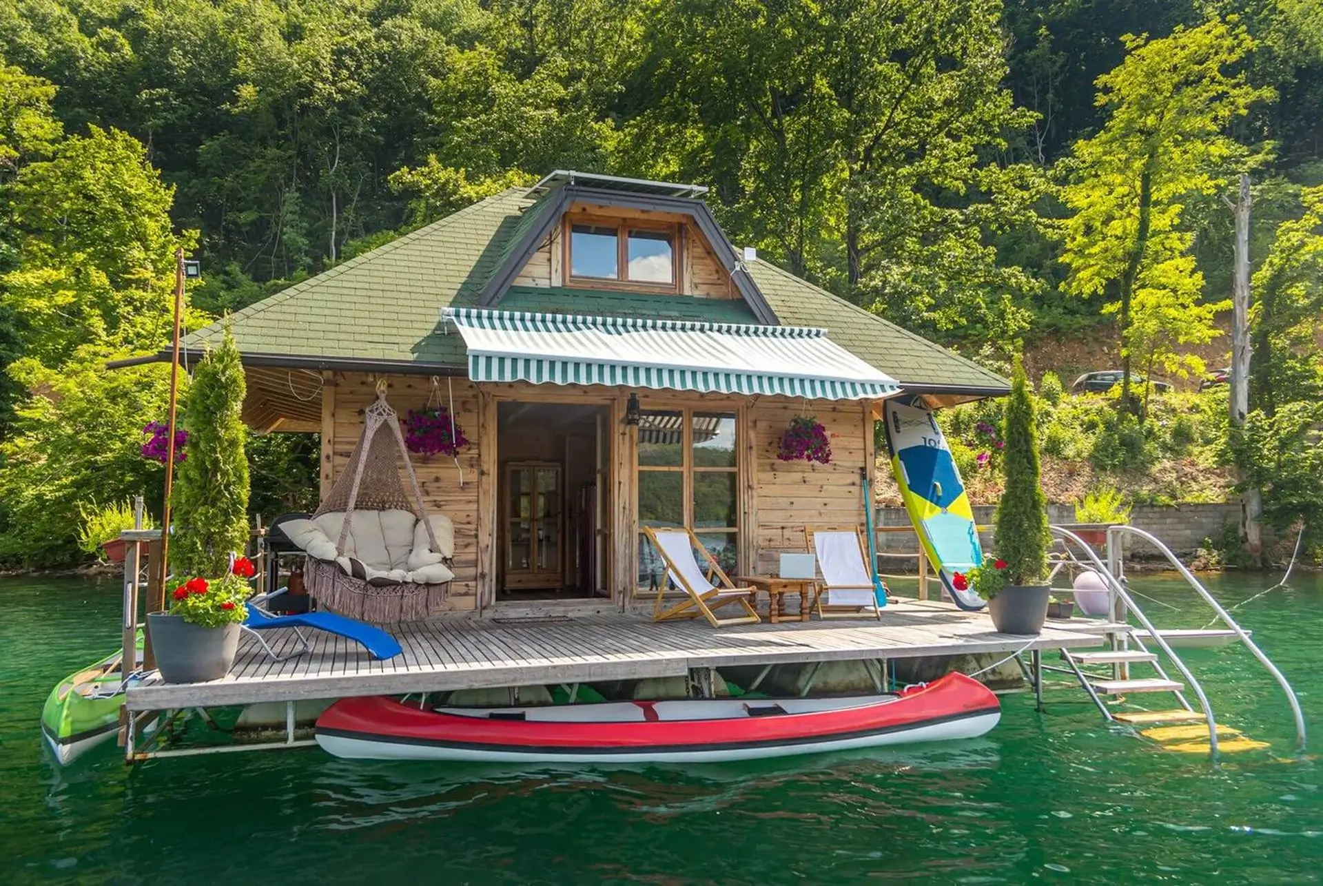 Kućica na vodi 3 – Splav 2 se nalazi na jezeru Perućac i se sastoji od dva nivoa, poseduje komfornu terasu koja je opremljena za kupanje, sunčanje i uživanje. U prvom nivou je dnevni boravak i kuhinja u kojima je spoj prirodnih materijala i modernog izgleda. Spavaći deo kuće je na spratu, sa dve odvojene spavaće sobe iz kojih se pruža pogled na jezero. Splav je opremljen solarnim panelima, kompletnom kuhinjom sa frižiderom i šporetom na plin, toplom tehničkom vodom, osvetljenjem i kompletnim kupatilom.