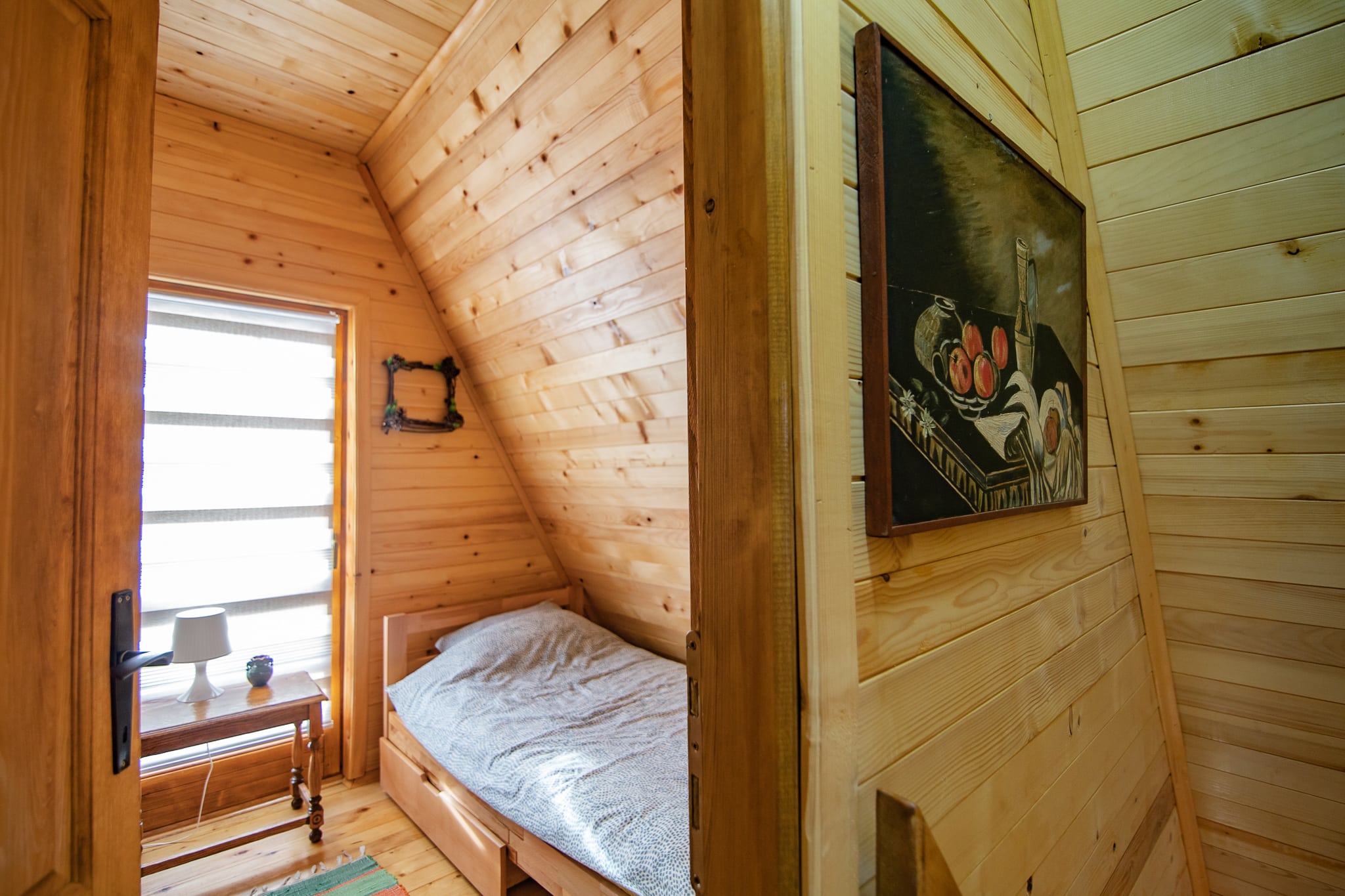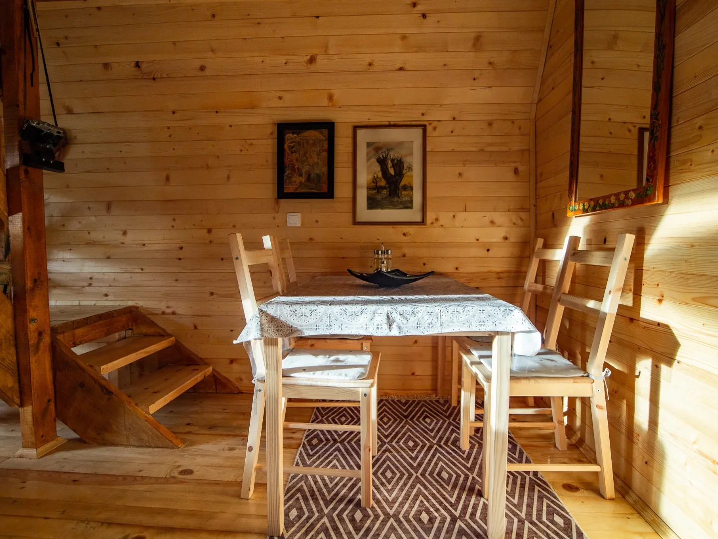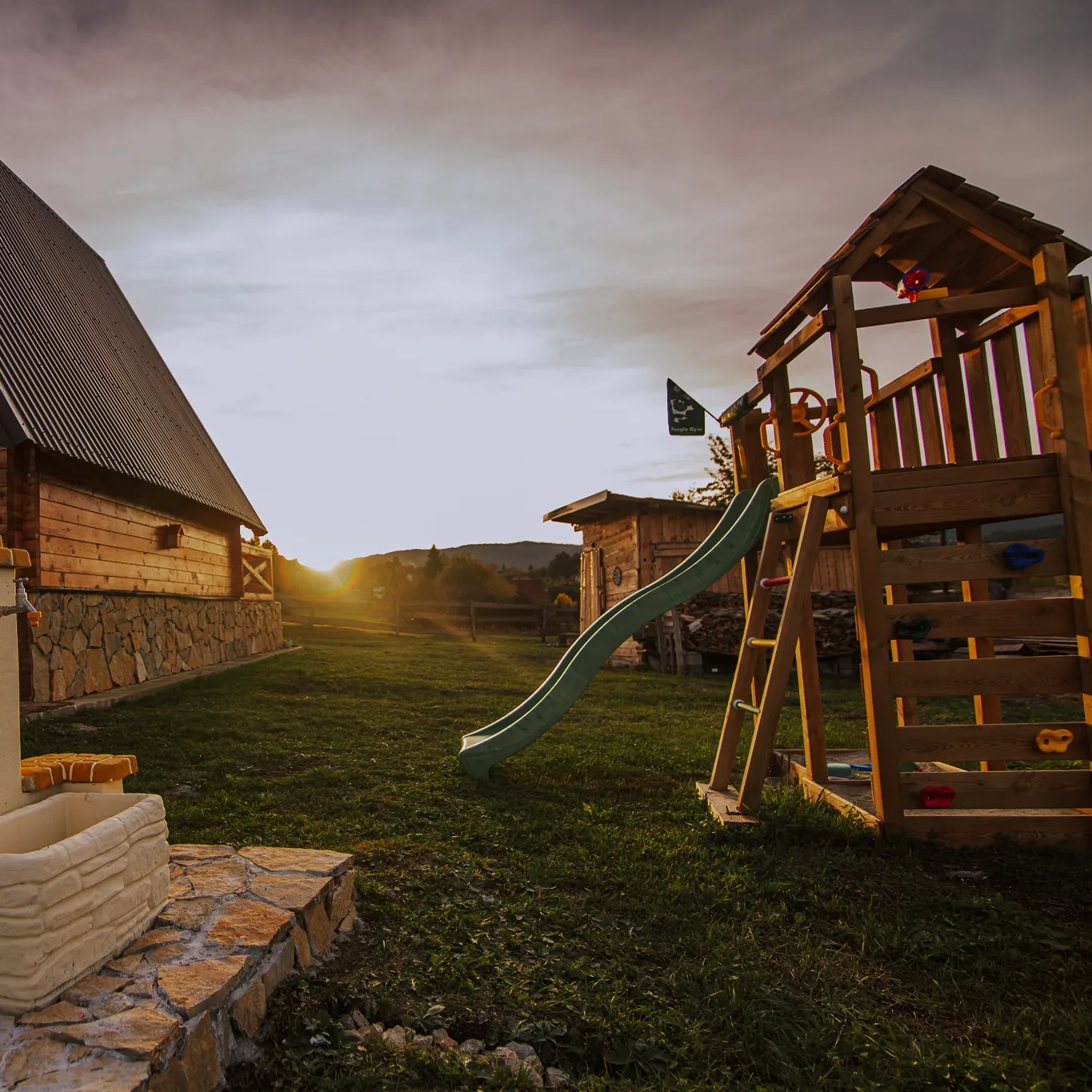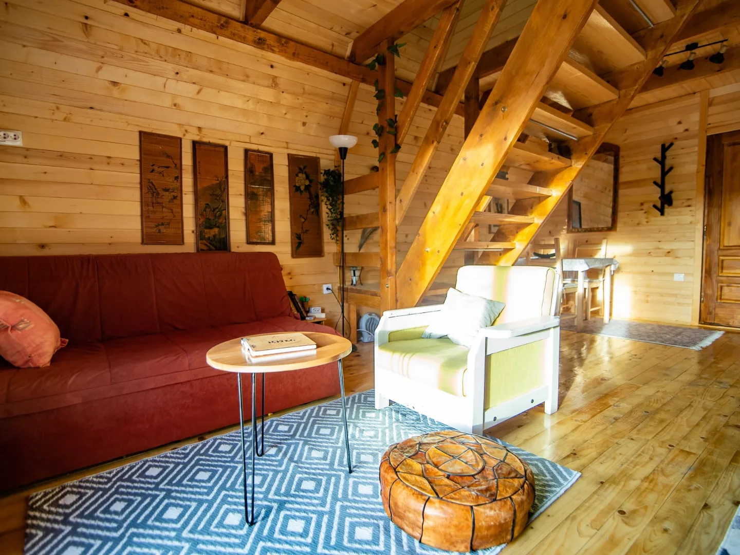 Brvnara prima 6 osoba. Posedujemo krevet na rasklapanje u prizemlju. Na spratu su dve spavaće sobe. U jednoj je francuski krevet za 2 osobe, kao i krevetac za bebu. U drugoj su dva singl kreveta. Opremljena kuhinja sa svim posuđem, aparat za kokice. Kupatilo ima sve potrebne elemente sa kozmetikom. Loženje je na drva sa Alfa plam peći. U dvorištu se nalazi jacuzzi uz dodatnu naplatu. Terasa sa nameštajem za sedenje. U dvorištu se nalazi fire pit sa priborom za roštilj, kotlić, tanjirača. Tu je i igralište za decu sa toboganom i peskom, klackalica, ljuljaške. Uživanje za odrasle je takođe omogućeno uz dve velike ljuljaske.