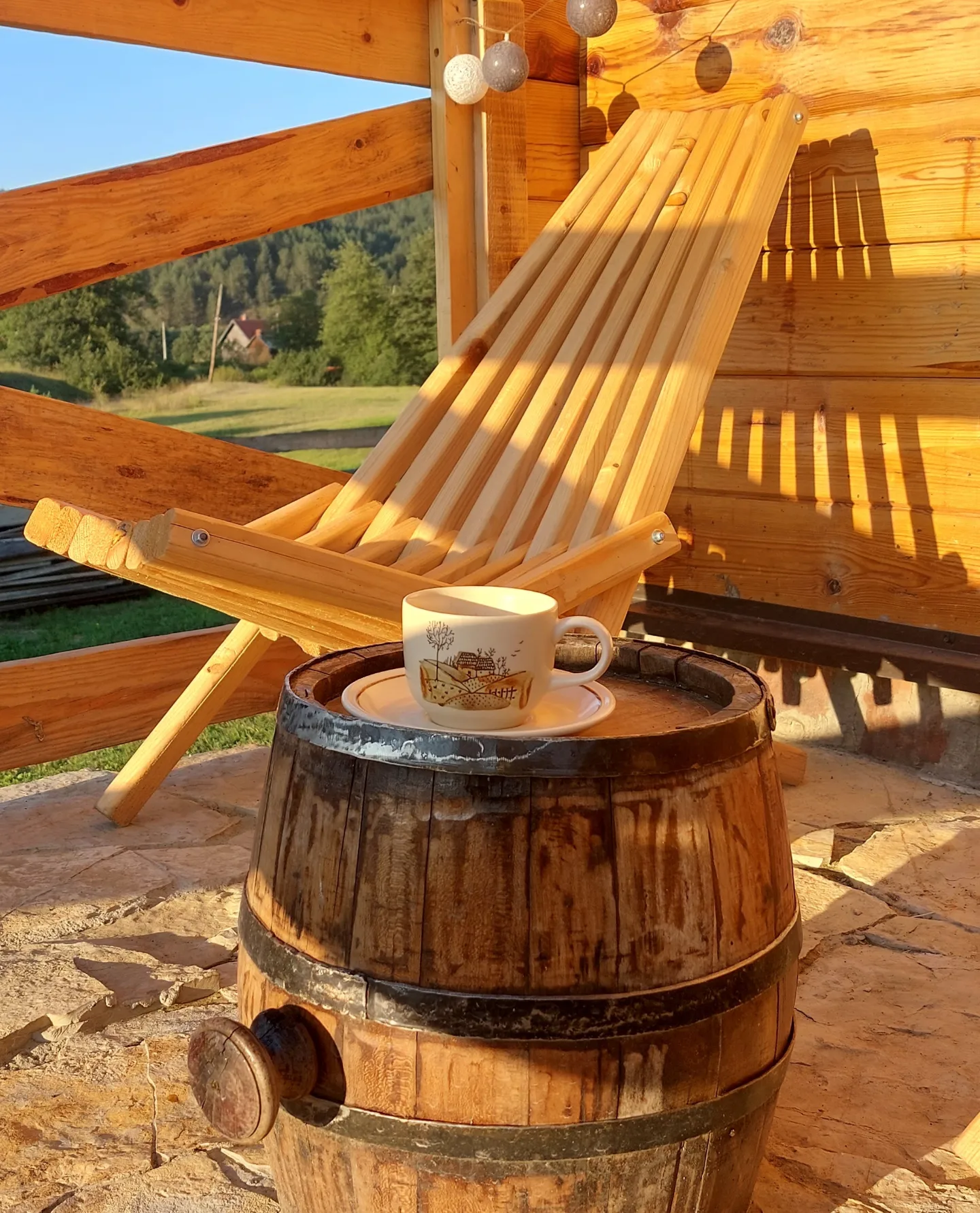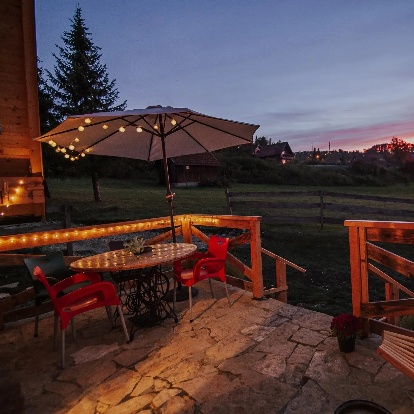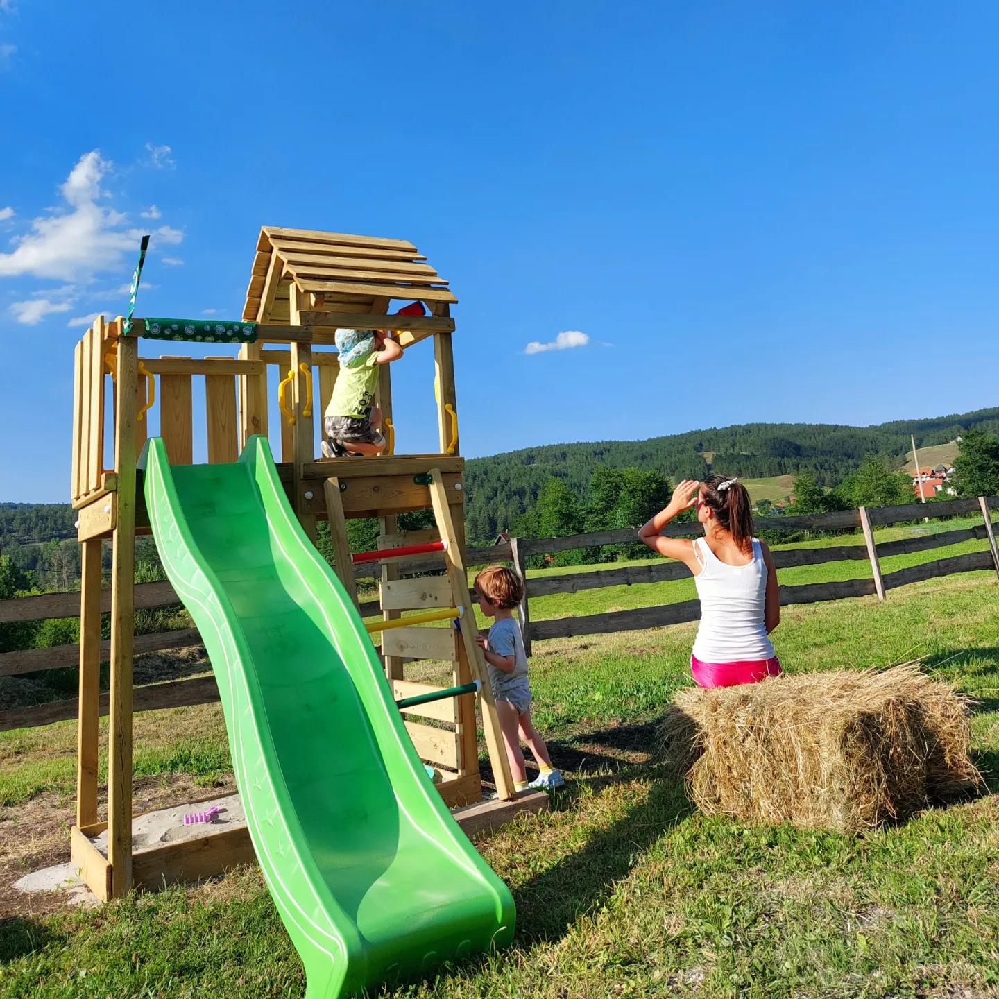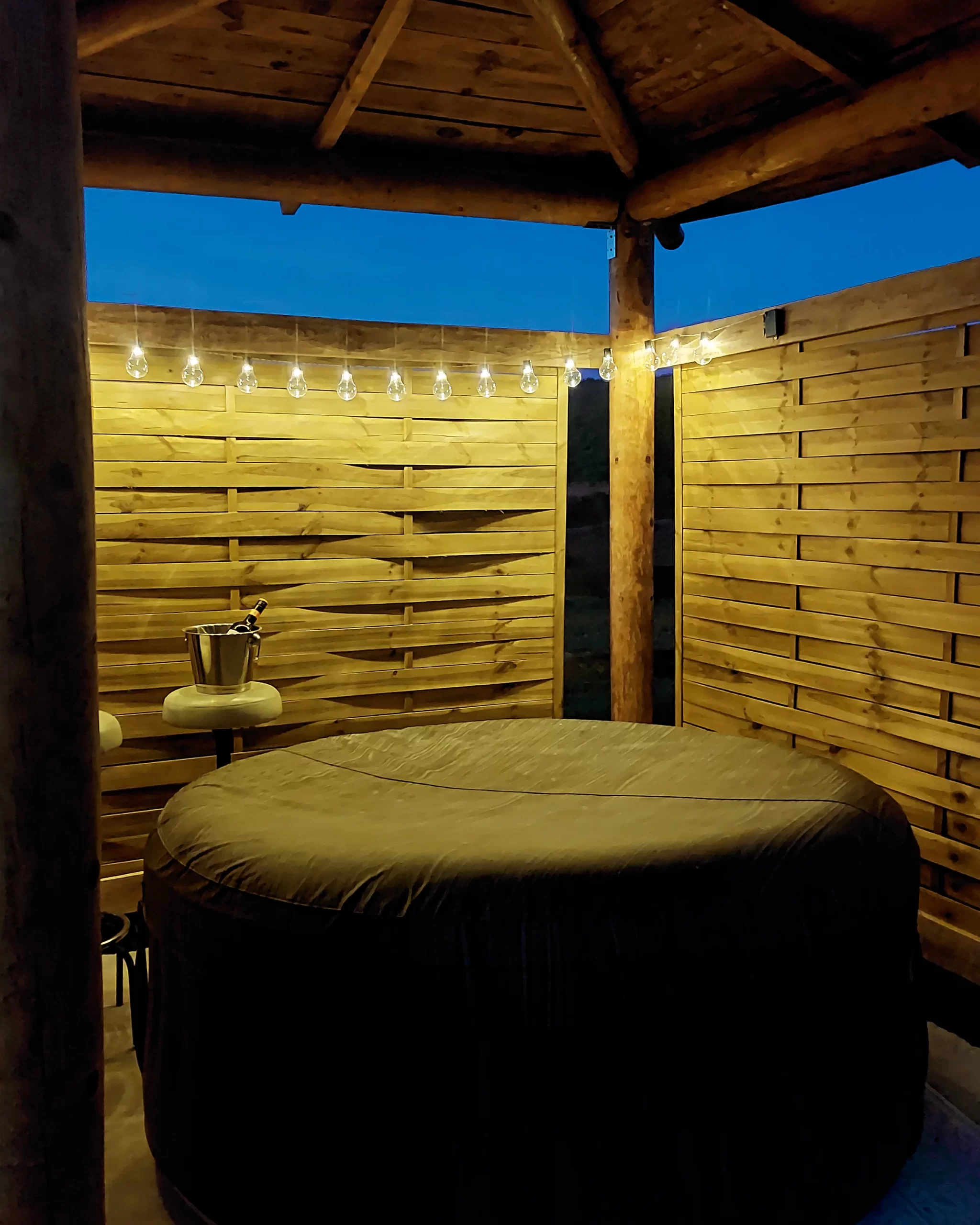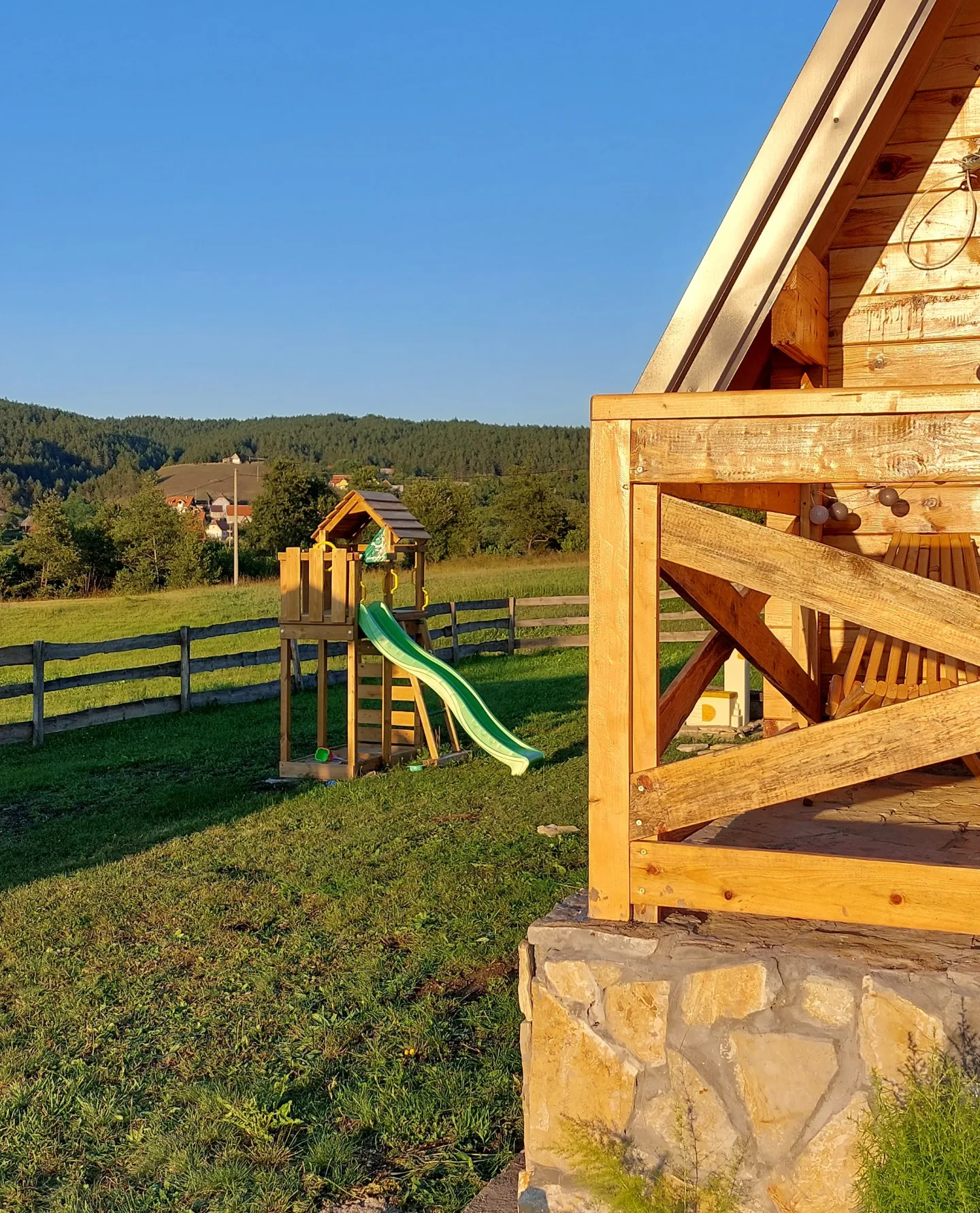 Brvnara prima 6 osoba. Posedujemo krevet na rasklapanje u prizemlju. Na spratu su dve spavaće sobe. U jednoj je francuski krevet za 2 osobe, kao i krevetac za bebu. U drugoj su dva singl kreveta. Opremljena kuhinja sa svim posuđem, aparat za kokice. Kupatilo ima sve potrebne elemente sa kozmetikom. Loženje je na drva sa Alfa plam peći. U dvorištu se nalazi jacuzzi uz dodatnu naplatu. Terasa sa nameštajem za sedenje. U dvorištu se nalazi fire pit sa priborom za roštilj, kotlić, tanjirača. Tu je i igralište za decu sa toboganom i peskom, klackalica, ljuljaške. Uživanje za odrasle je takođe omogućeno uz dve velike ljuljaske.